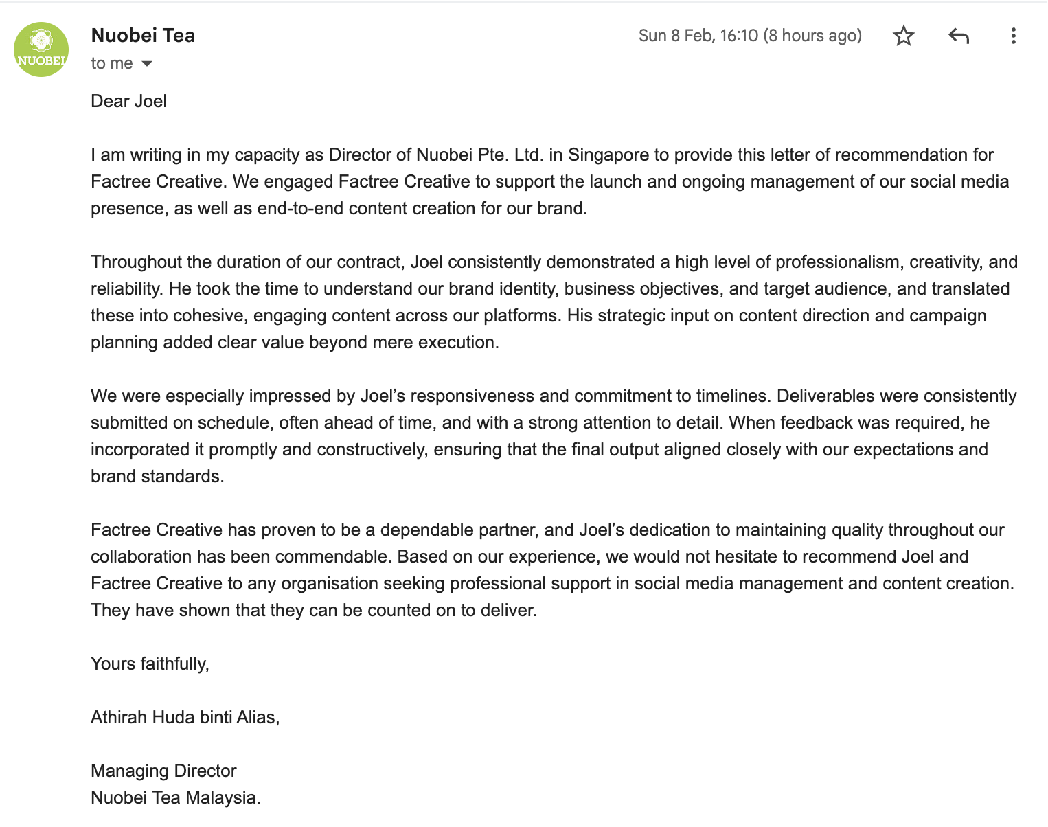 Nice photos taken for mooncake posters, and able to develop banners of varying needs. To consider the use of animation for better results.Able to assimilate requirements and feedback from brand effectively to produce a nice product video. The PR kit for social media influencers is very presentable.Hardworking and responsive team. Looking forward to more collaborations in the new year.- Dr. Joe, Chocolatier